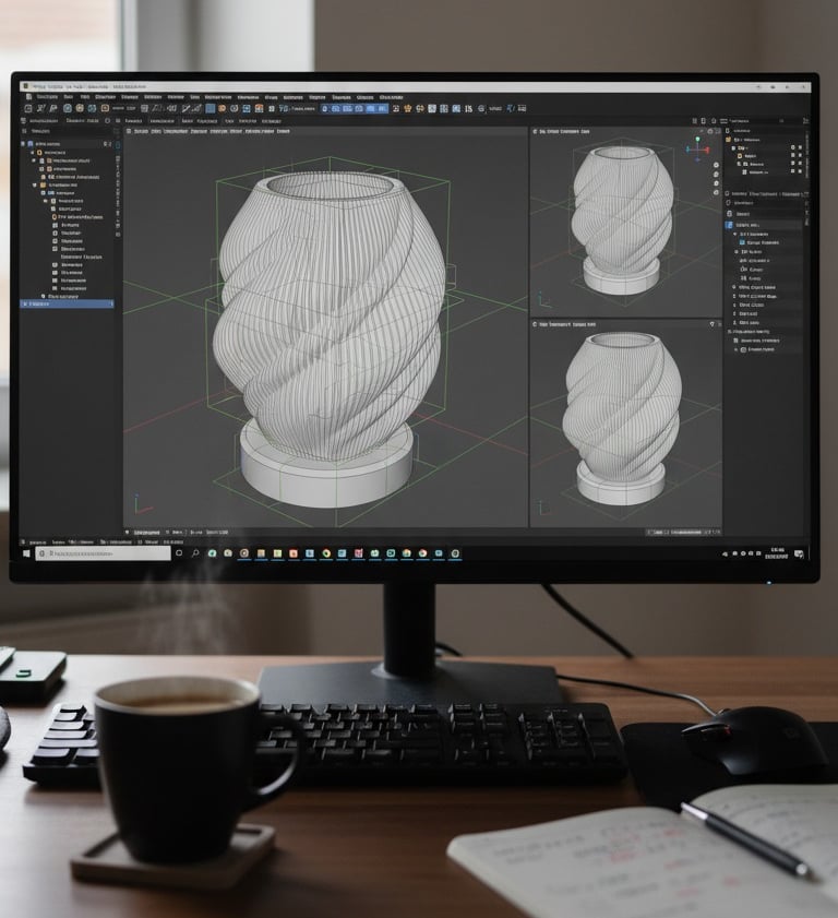 Vient ensuite la phase numérique : le dessin est affiné, converti en schéma 2D, puis modélisé en 3D pour prendre toute sa dimension.